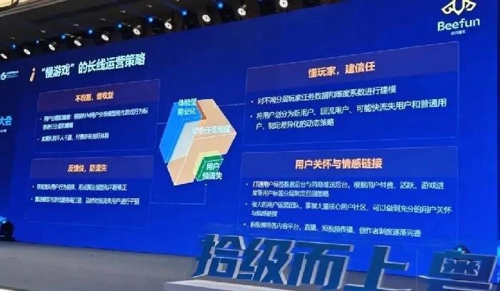 “慢游戏”对我们来说,不是一句口号,而是可落地的方法。我们将其凝练为四条:用户分层、行为判断、流失预警、用户关怀。有人可能会问:做游戏总要商业化,这和用户体验矛盾吗?从我们这几年的实践来看,并不矛盾。如果我们真正理解玩家、建立信任、不去收割,收益并不会减少。因为一切商业化的设计,只要带着“体验优先”的目标去完成——比如在做精准推送时先问自己:如果我是玩家,我愿意收到这样的推送吗?——最终都会回归到用户关怀与情感连接上。