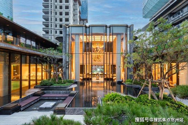 下沉式会所的内部则点缀着泫雅棕与威尼斯棕大理石作为局部背景,将奢华酒店的艺术美学融入日常生活。