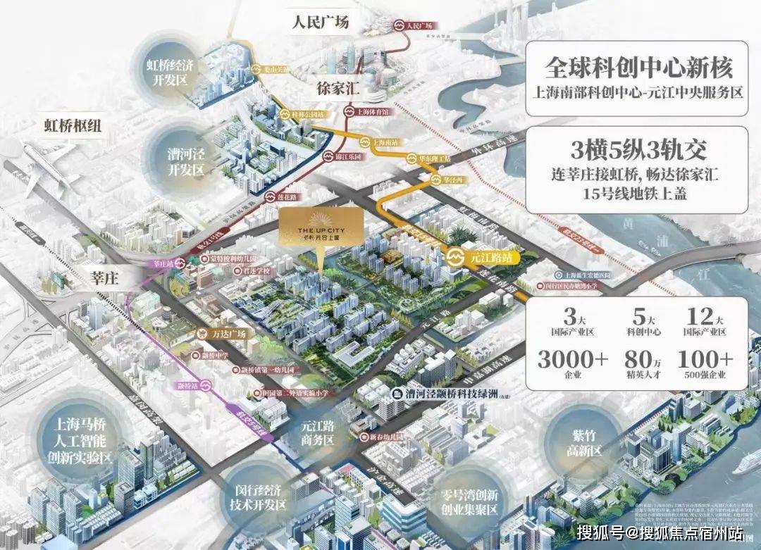 ,向南接引“大零号湾”,东联吴泾“滨江战略留白区”,西接马桥人工智能区的生活秀带,定鼎闵行主城科创重策地;未来将以科创产业为引擎,入驻100+五百强企业,引进80万全球高智人才,建设商业休闲、优质教育、文化体育、城市公园等复合公共配套,筑就创新、人文、生态高度融合的中央服务区,领潮未来都市理想生活,为闵行展开一幅无限想象的蓝图。