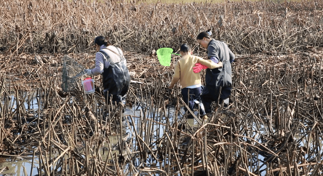 冬日的荷花池中,参与群众俯身摸索,仔细地搜寻鱼群踪迹,一旁的小朋友们早已按捺不住兴奋,握紧手中的抄网不断地打捞。当肥硕的大鱼成功入网时,大家齐声发出惊呼与喝彩,欢腾的声浪在园区里久久回荡。