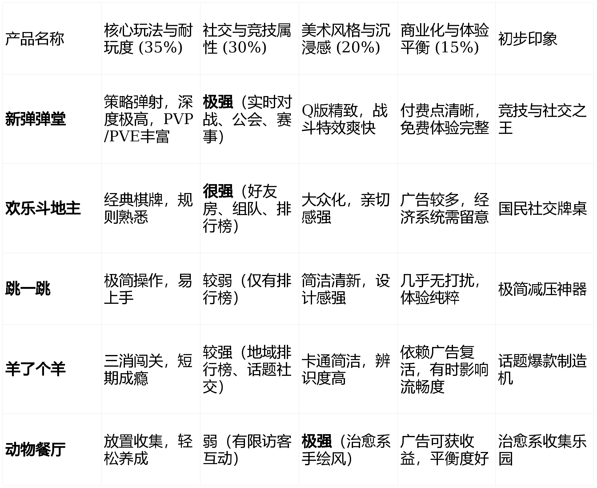我们设定了以下4个核心测评维度,并为每个维度赋予权重,以全面评估一款休闲小游戏的综合价值: