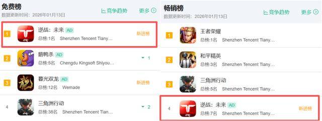 昨天,全网预约用户超4000万的《逆战:未来》率先发布,首发即拿下国内iOS免费榜第一,直接冲上畅销榜第四。兑现了一代《逆战》老玩家的期待,也体现了端游年代腾讯最重要的自研IP射击游戏的积累和沉淀。