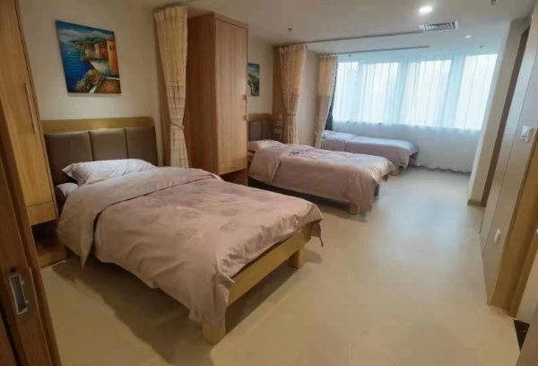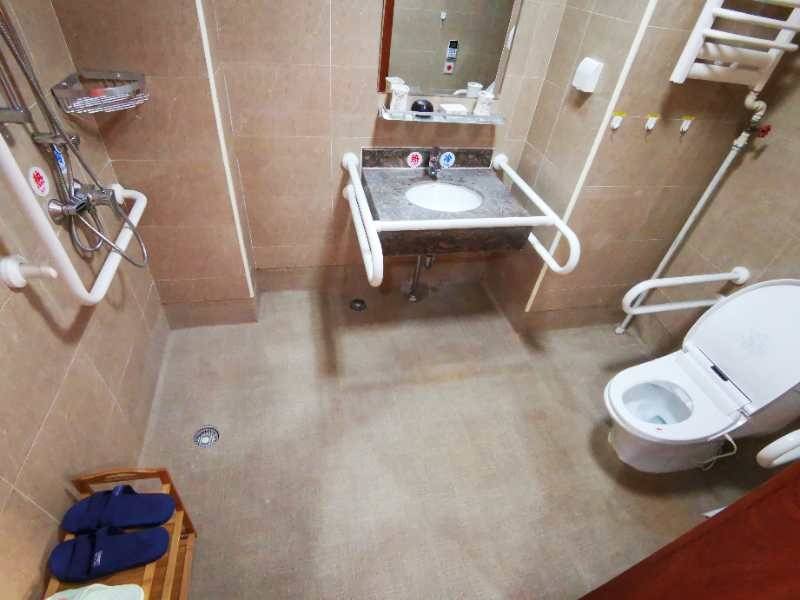 ❨ 设施特色:光大汇晨汇爱托养中心(北京市残疾人服务示范中心)大厦由主楼和裙楼组成,地上22层、地下2层,整体采用无障碍设计,全方位适配残疾人与长者使用需求。房型设置丰富多样,包含109间两人间、28间三人间、12间四人间,每两个三人间配备一个共享客厅,四人间单独设置客厅,为长者提供社交与休闲空间;除10间三人间外,其余房间均配备独立卫生间,保障隐私与便捷;托养房间内统一配备紧急呼叫、声光报警系统,突发状况可快速触发警报,工作人员及时响应。每楼层均设有公共开放休息区、公共卫浴间、洗衣间、护士站、避难间、布草间,功能布局完善,满足日常起居需求。全楼配备新风、制冷、安保、智能楼宇、楼内导航、梯控、房间呼叫系统等智能设施,WIFI全覆盖且支持5G信号,4部医用电梯直通托养楼层,保障出行便捷与安全;同时设有独立出入口、独立前台,实行封闭式管理,兼顾安全性与私密性,24小时市政热水供应,提升居住舒适度。共享区域功能齐全,涵盖文化娱乐区(电影放映厅、排练厅)、职业训练区(书店、超市、咖啡厅、简餐厅、水吧、职康站等)、户外活动区(户外平台),同时配备无障碍融合放映厅、培训室、报告厅、计算机教室、志愿者之家、艺术教室等,既满足日常休闲娱乐需求,又为残疾人与长者提供职业训练、技能提升的平台。
