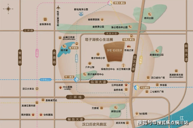 项目周边拥有后湖公园和塔子湖体育中心两大生态资源 。后湖公园占地约 2000 亩,内有生态湖,沿湖岸线 公里,为居民提供了亲近自然、休闲漫步、观赏湖景的好去处,在家门口就能享受清新空气和优美湖光山色 。塔子湖体育中心作为国际赛事场馆,占地规模达 2.3 公里范围,不仅能承办各类大型体育赛事,日常也向市民开放丰富多样的体育健身设施,满足居动健身需求,提升生活品质 。