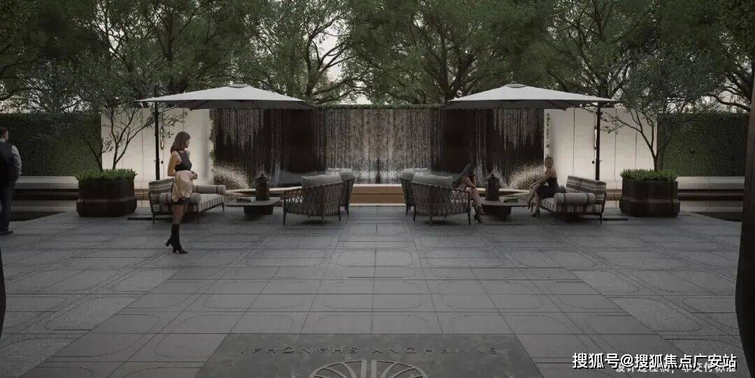 项目入口“孔雀廊”取意路易斯·康的金贝尔艺术馆拱形语汇,融合礼查饭店“孔雀厅”的优雅形态,成为历史与当代交汇的门廊;创新双层廊道复合景观体系,让归家之路穿行于层层绿意与光影之间;中央草坪灵感源自英国达西庄园,喷泉与几何花园交织,营造“城市庄园”的诗意尺度。更有地上悬浮会所 Symphony 会客厅,将健身、艺廊、私宴与花园融为一体,于阳光与江景之间,奏响一曲关于生活的协奏曲。