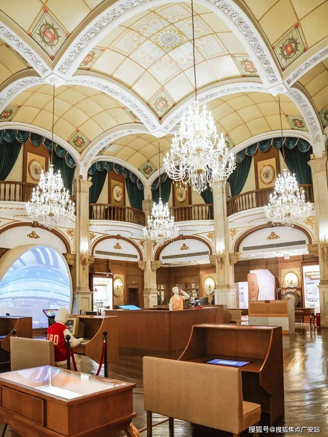 礼查饭店,这座见证上海摩登生活开端的传奇建筑,其孔雀厅被誉为“远东第一厅”,是当年上海著名的社交场,大厅以孔雀为主题,阳光透过拱形彩色玻璃窗洒进厅内,与拱形线条交相辉映。