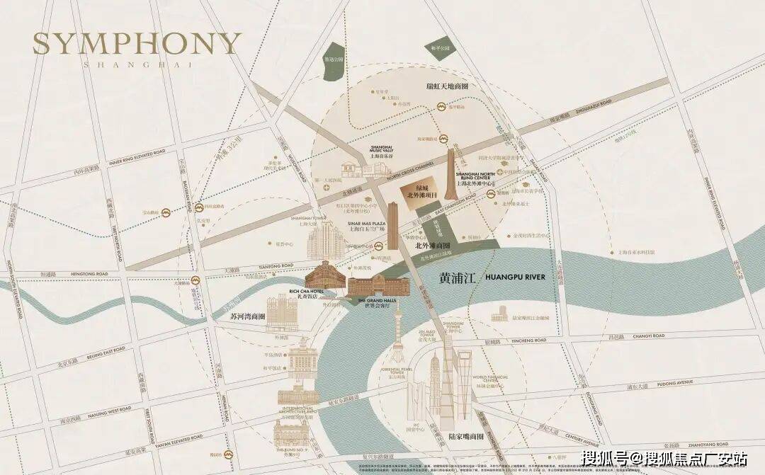 尊踞上海北外滩之心,与陆家嘴天际线从容对望。项目直线余米(来源百度地图),坐揽北外滩中央公园生态绿肺(规划)及百年外滩人文画卷,是外滩新百年时代无可争议的封面作品。
