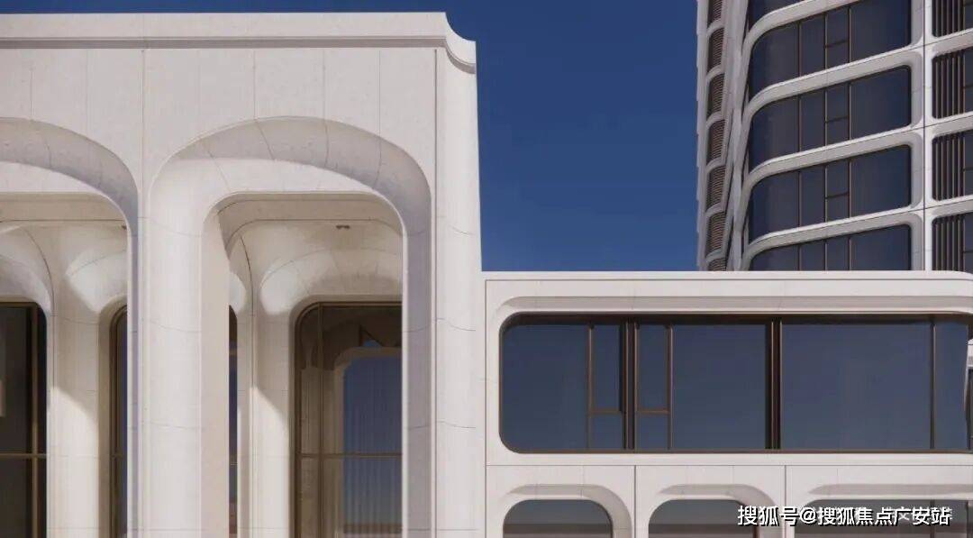 石材择选上,潮鸣外滩项目甄选贝金米黄,结合多重做法,下部白色石材,上部白色铝板(石材纹理转印),柱脚以皮革面质感处理,让建筑在与城市底蕴的交融中沉淀出内敛的优雅。