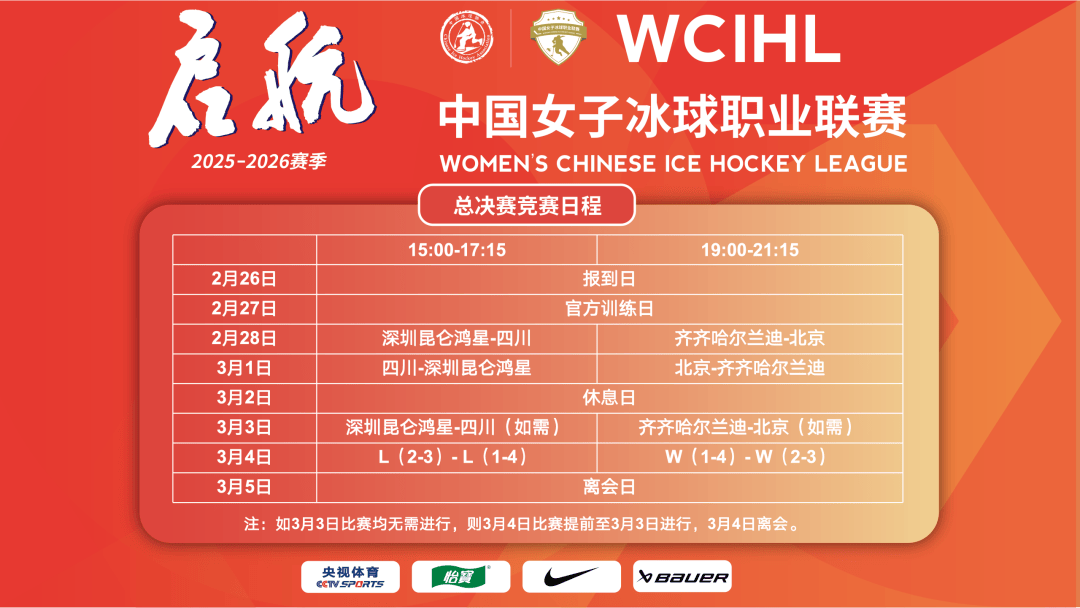 2025-2026赛季中国女子冰球职业联赛总决赛的战鼓将于2月28日至3月4日在哈尔滨体育学院擂响。根据赛制安排,总决赛将采用交叉赛模式,半决赛为三战两胜制,决赛则一场定胜负,这无疑将让每一场比赛的悬念拉满。
